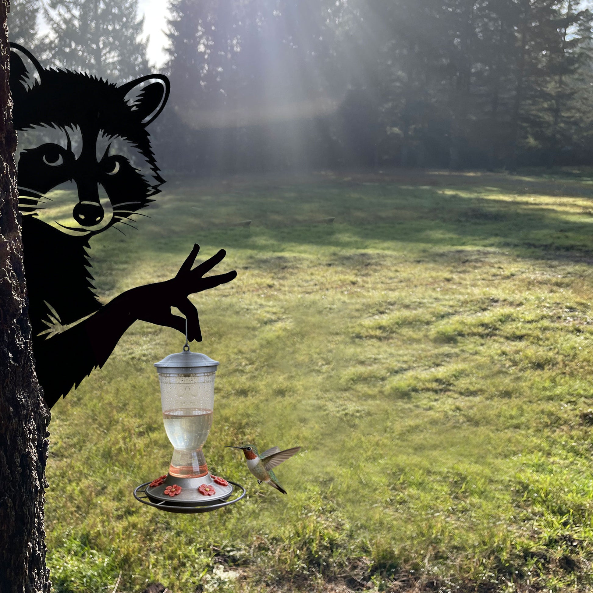 🌙Unique and humorous design:These animals hiding behind the trees, holding bird feeders, are so funny.