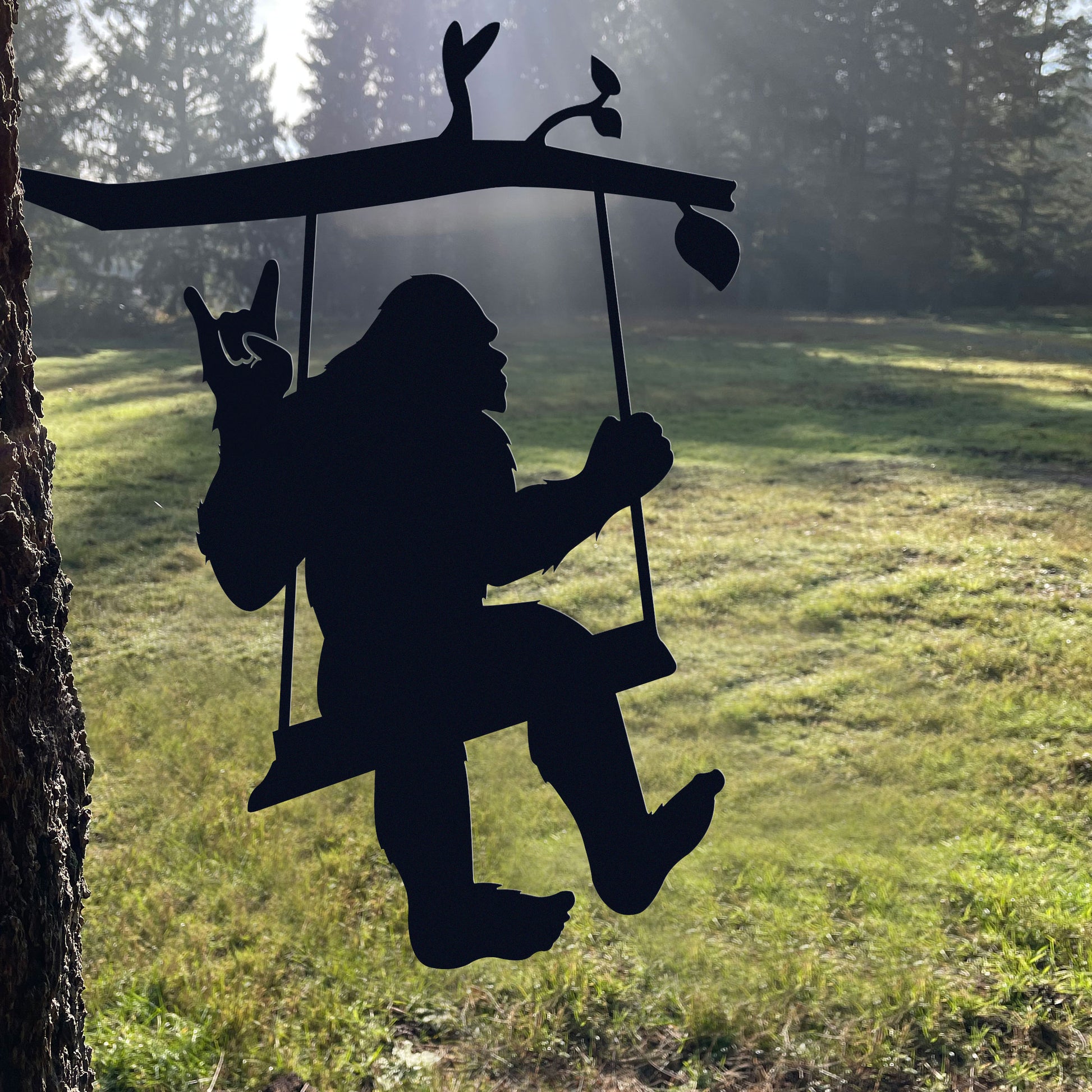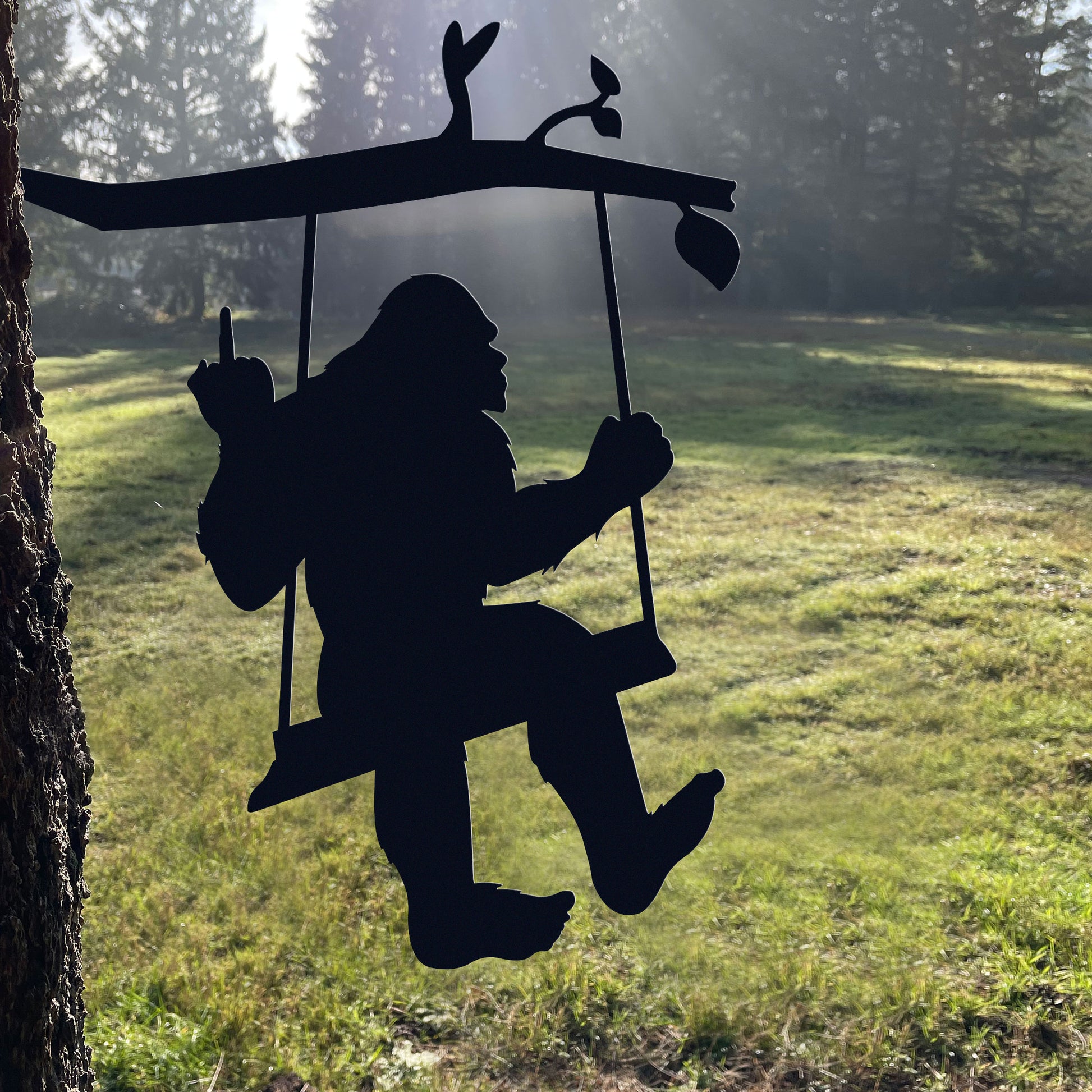 🌙Unique and humorous design:The lifelike Bigfoot swinging on a swing with its middle finger raised is a humorous pose that is sure to make you laugh.