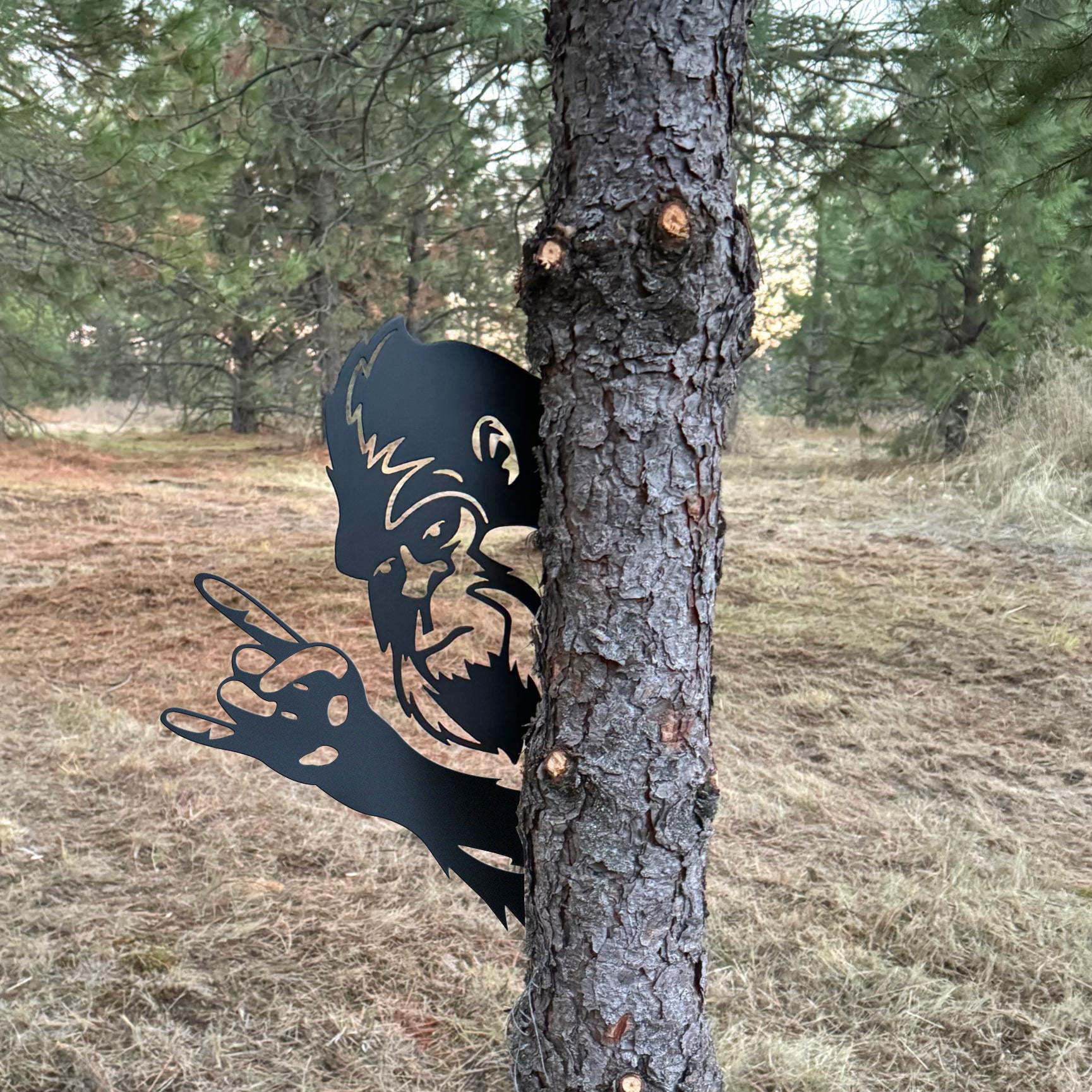 Bigfoot metal art showing middle finger