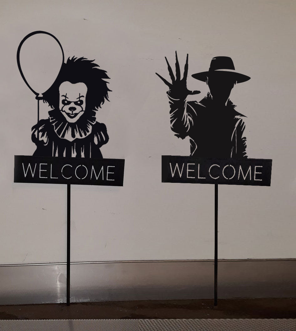 ⭐GO AWAY Garden Stakes:These horror movie character garden stakes are a great way to scare trick-or-treaters